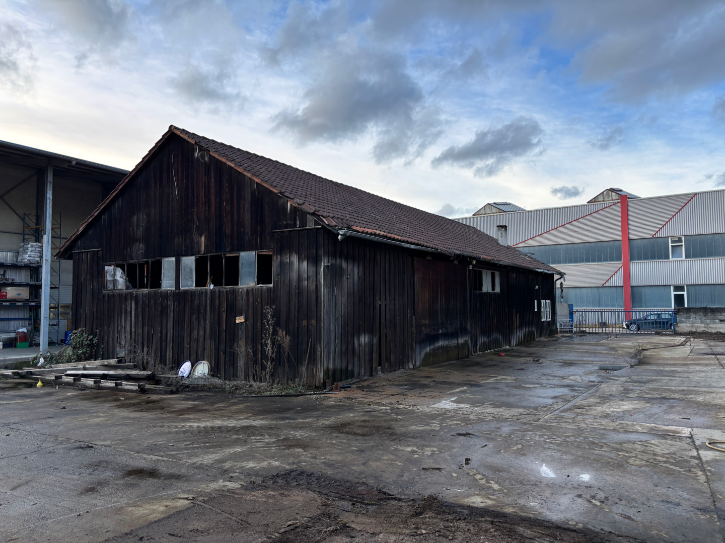 Östlich von dem Gewerbegebäude befindet sich eine alte Holzhütte, die der aktuelle Eigentümer aber noch vor dem Verkauf abreisen wird, da diese nicht mehr erhaltenswert ist.