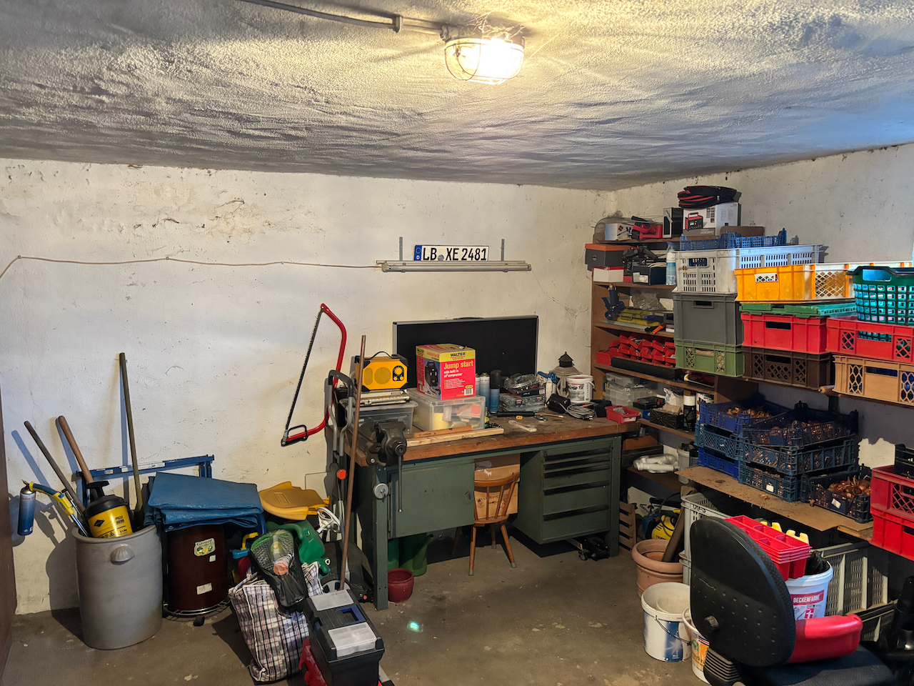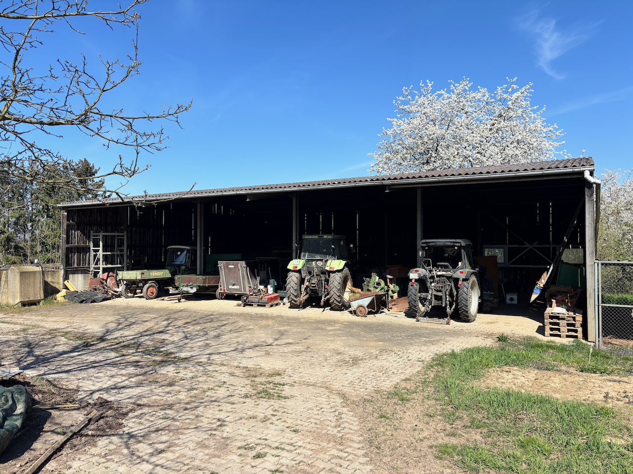 - eine geräumige Maschinenhalle mit ca. 247 m², geeignet für landwirtschaftliche Fahrzeuge oder Unterstellmöglichkeit aller Art